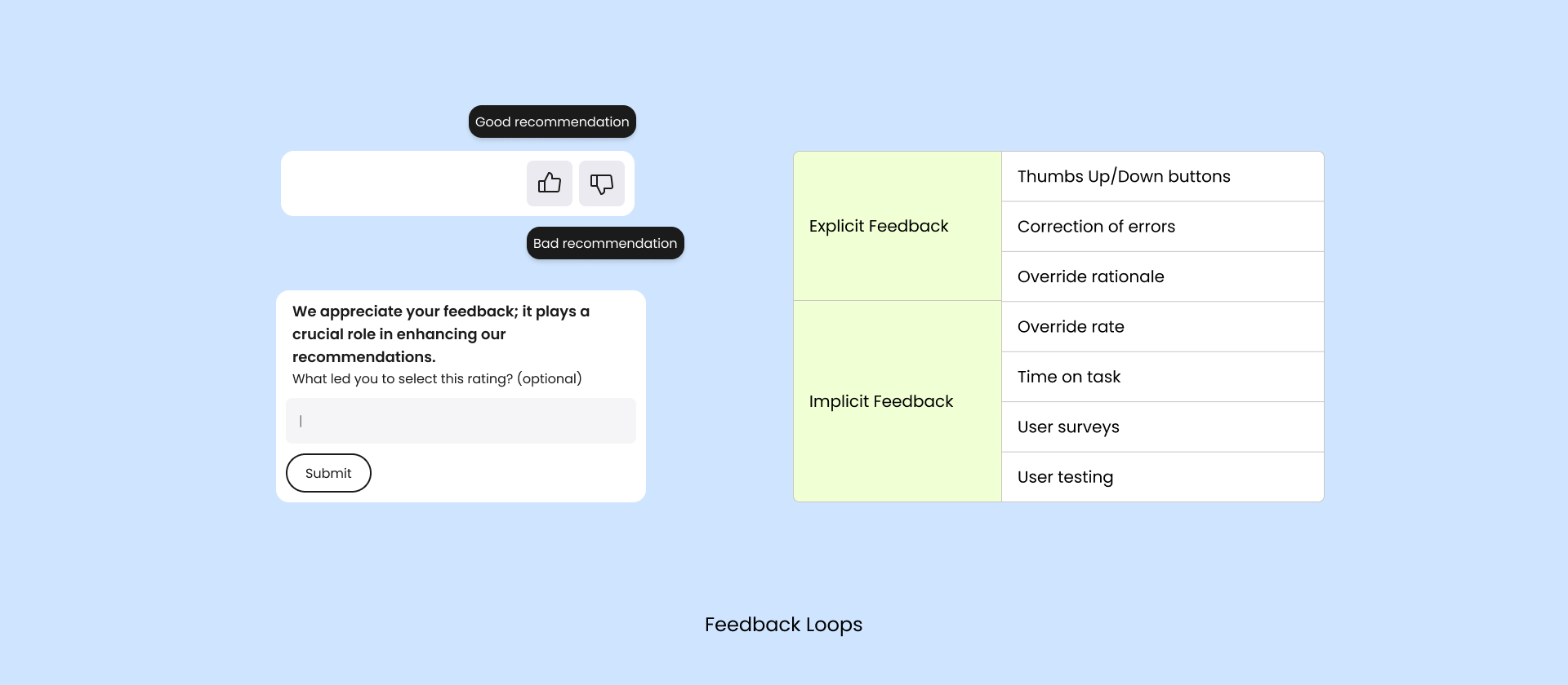 In the case of financial decisioning, we should encourage the user, as an expert underwriter, to correct the mistakes and provide feedback on incorrect suggestions, so the machine can learn and developers can get feedback for system improvement. Highlighting the direct benefits of this process can be motivating.